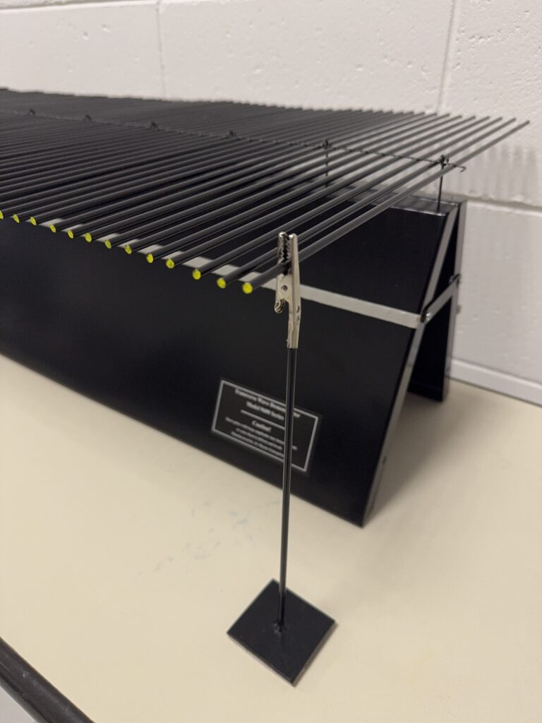 Il morsetto serve a bloccare una delle barre della macchina di Shive per gli esperimenti sulla riflessione dell’onda e sulle onde stazionarie con terminazione chiusa.